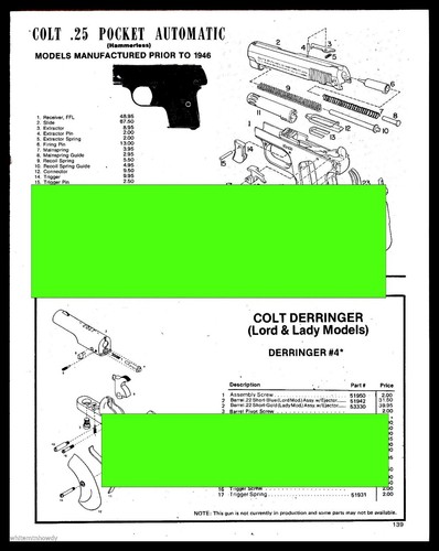 1989 Colt 25 Pocket Pistol Derringer Lord Lady Exploded Schematic Parts List Ad Ebay