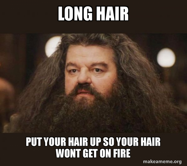 Long Hair Put Your Hair Up So Your Hair Wont Get On Fire Hagrid I Should Not Have Said That Make A Meme
